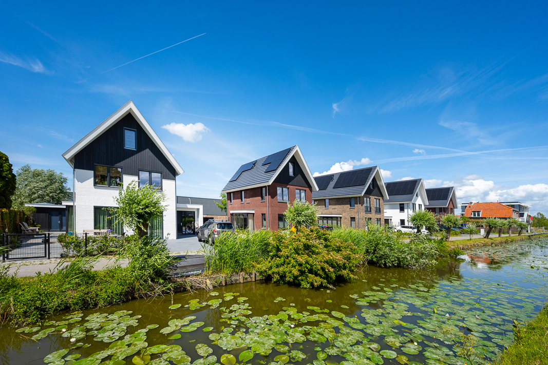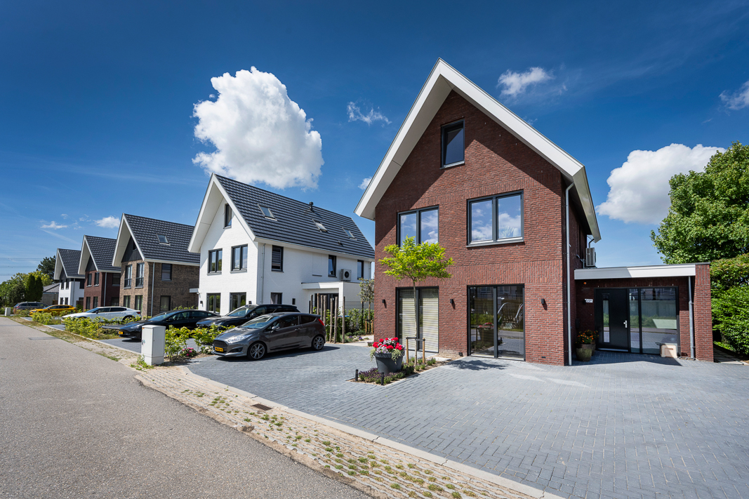 Vijf unieke woningen die samen één mooi geheel vormen. Iedere koper gaf zijn woning een eigen karakter door persoonlijke keuzes in aanbouwen en erkers, afwerking, metselwerk, gevels en kozijnen.